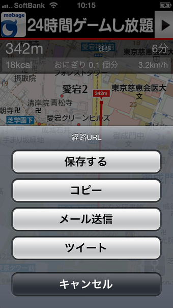 キョリ測は、起動して地図上の任意の地点をタップするごとに簡単に距離を計測できます。このほか、地図を固定し地図面を指でなぞって計測する方法、地図をスクロールするごとにスクロールした距離を計測する方法、これら3つの測定方法で複数地点間の距離を測定できます。通勤・通学経路など直線距離だけでは測れないような、より現実のルートに近い距離を測ることが可能できます。また、徒歩、ジョギング、自転車、車などを設定することで、測った距離の概算所要時間を計算することもできます。中継地点の標高のグラフ表示、カロリー計算なども可能であるため、ダイエットにも役立つでしょう。策定した経路は保存できるほか、URLを発行しメールやTwitterで共有することもできます。