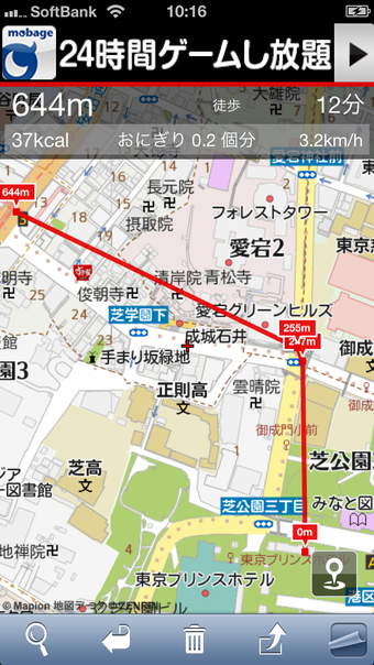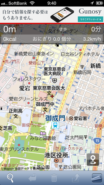 地図上の距離を簡単に測定できるキョリ測定アプリ カロリー計算も可能